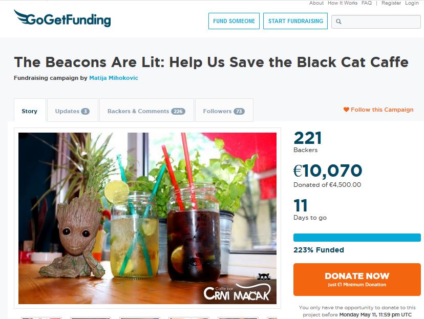 Nadam se da će se mnogi povesti za ovim primjerom, ali prethodno dobro osmisliti svoj jedinstveni brend, marketinšku kampanju i vrijedno graditi svoju skupinu vjernih pratitelja. Caffe Bar Crni mačak dugo je ulagao u geek zajednicu što je vjerojatno jedan od razloga zašto je kampanja toliko uspješna. Do sada je prikupljeno preko 10.000 EUR (ovaj tekst je pisan 30.04.2020.). Idealan sugovornik za razgovor o crowdfunding kampanji bio je Miroslav Wranka (Siro za frendove) dugogodišnji novinar specijaliziran za tech i digital teme.